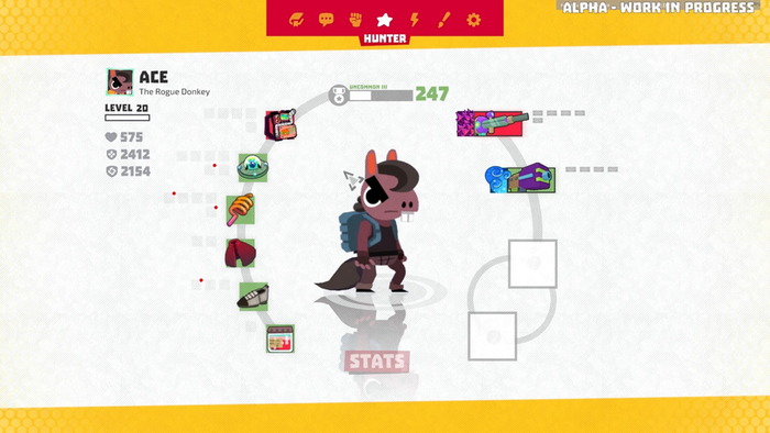 Our favorite space donkey Ace is our Trickster character, combining great mobility, crowd control and single-target damage, with a bit of support thrown in for good measure! Ace's kit has been completely redone as a rogue-ish jack-of-all-trades, and we hope you have a lot of fun with him!