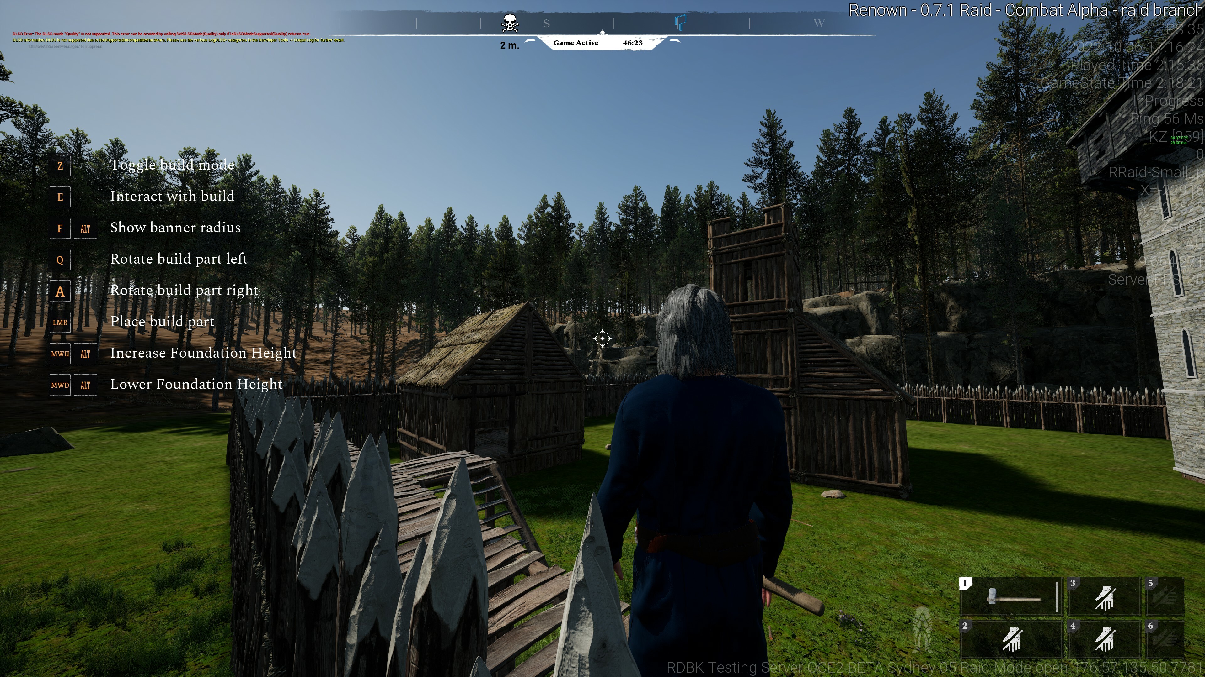 Fixed vehicles breaking movement replication Tweaked shield hold block angles Reduced Parry angle Fixed stone amouns on stone croppings Fixed roof sockets Fixed preview building blocking upgrade traces Mail Hauberk is now 1:1 sized Tweaked armor costs to make it easier to bulk craft Increased Katzbalger damage slightly Increased Mace damage slightly Increased Waraxe damage slightly Bows now only go on the primary slot Quivers only go on secondary slot Resource bag only goes on secondary slot Bandages can now be placed on the toolbelt Wall torches are cheaper Cloth and Leather craft faster now Cloth is cheaper to craft Rebalanced fuel and charcoal costs Fixed resource bag not dropping properly Increased resource bag size Fixed Icon scaling Fixed Icon scaling when rotated Armor can no longer be repaired if it falls below 33% durability Added Battering Ram recipe Added many missing icons Bow Draw strength has a penalty on high encumberance (Slower projectiles, less damage) Added Steel tools Removed Unused keybinds Improved Roof placement Fixed issues with triangle floors Fixed up window directions Fixed issues with invisible resources nodes Improved some Emote anims Added noise that scares deer away to arrow impacts Improved deer AI Fixed damage resistances on buildings Fixed ladder dropping a full mesh Fixed command wheel opening while chatting Added starting beds to raid map banners Swapped context menu options for banners Reduced Maul damage Reduced Stakes cost Fixed some repair costs on buildings Tweaked Steel weapon costs Reduced Iron Hoe cost Added Primitive arrows for Shortbow Fixed lock position on Gate Beds now require a floor and banner Fixed warmup spawns Players now recieve a notification when they can't build while under siege that shows the time remaining Fixed a bug causing raid mode to never end Endgame screen shows proper winner now Fixed flying bug Rewrote Bed spawning system Fixed Pillars not working well with Walls and Floors Fixed Ladder volumes being hit by melee attacks Fixed boulders persisting Fixed Plant fiber cluster spawning in the same location as other Plant fibers Added Wheelbarrow for mobile storage Tweaked Raid time added from damage Scaffolds now have 1 HP