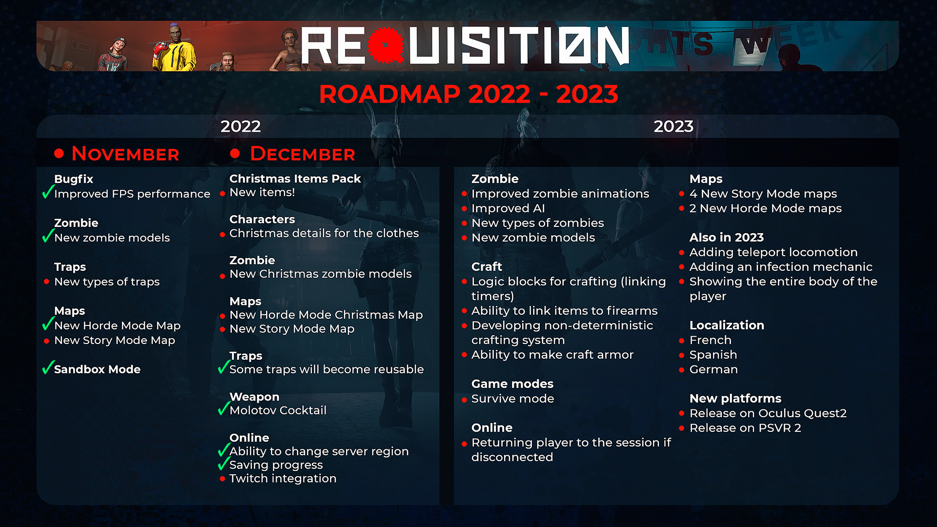 And a little about our plans for December. We did some changes in our Road Map, so here’s what we’re planning for the end of the year: Christmas packs (new items, clothes), new Christmas zombie models, new Story mode map, and some other fun stuff! Are you excited?