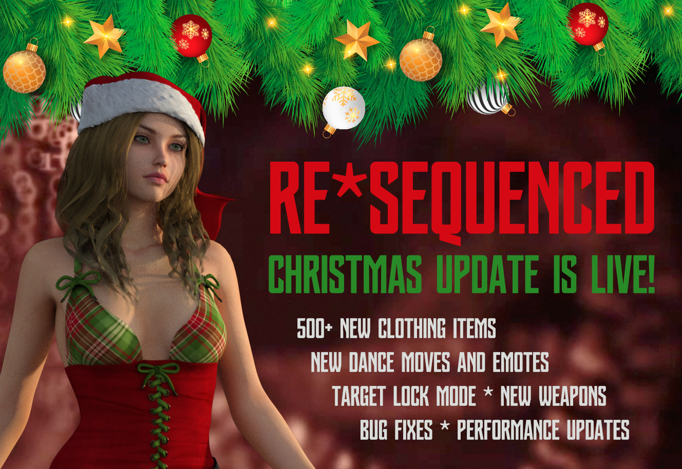 Our massive Christmas update is now live, with over 500 new clothing and hair items, and new dance moves and emotes! It also delivers a raft of bug fixes and performance enhancements, and the new target lock feature.