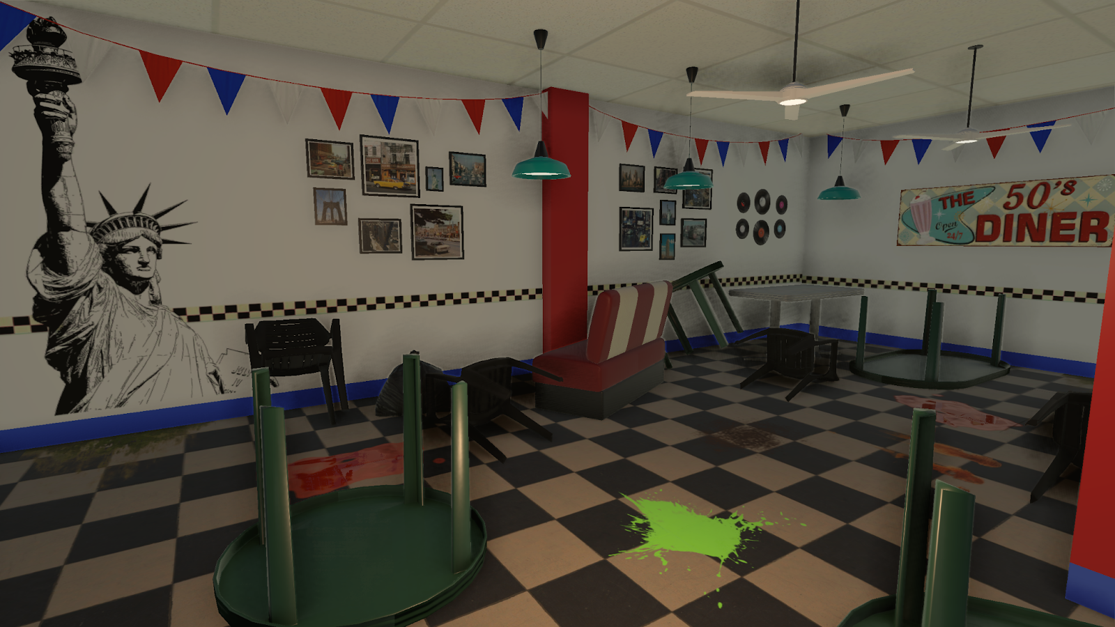 We would like to present to you our brand new restaurant inspired by American diners from the 50’s. Apart from a few screenshots we’ve also prepared a short video showcasing the new location. We have a video showcasing our newest restaurant ready for you, so be sure to check it out. Below you can see the view of the american diner’s left wall: