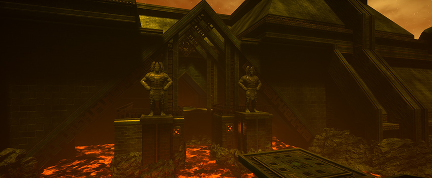 The Swampy themed maps, E3M5/6 are the oldest parts of their society, so you'll see even more run down ruins, and toxic swamps. We wanted the player to feel a sense of progression as you play through the levels for how old Morsgoroth are.