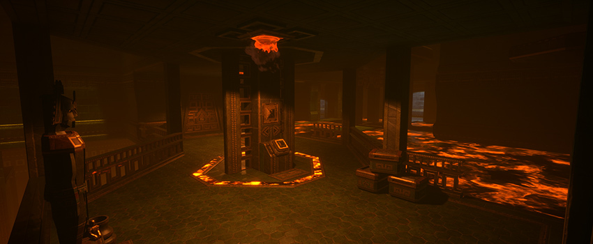 When designing Episode 3 it was important to maintain the design philosophies from the previous episodes while changing things up to feel familiar but different. For example PDA Backup machines don't exist, instead you save inside of Shrine Rooms, there are no medic stations, instead there are rejuvenation pools, and the layouts aren't governed by human needs, such as repair bays, offices, etc so layouts and design are a bit more abstract, but the over all design philosophies still exist for level layouts and connectivity.