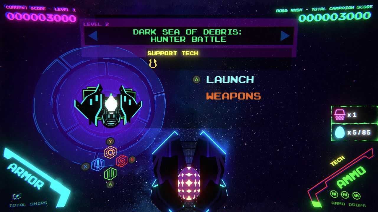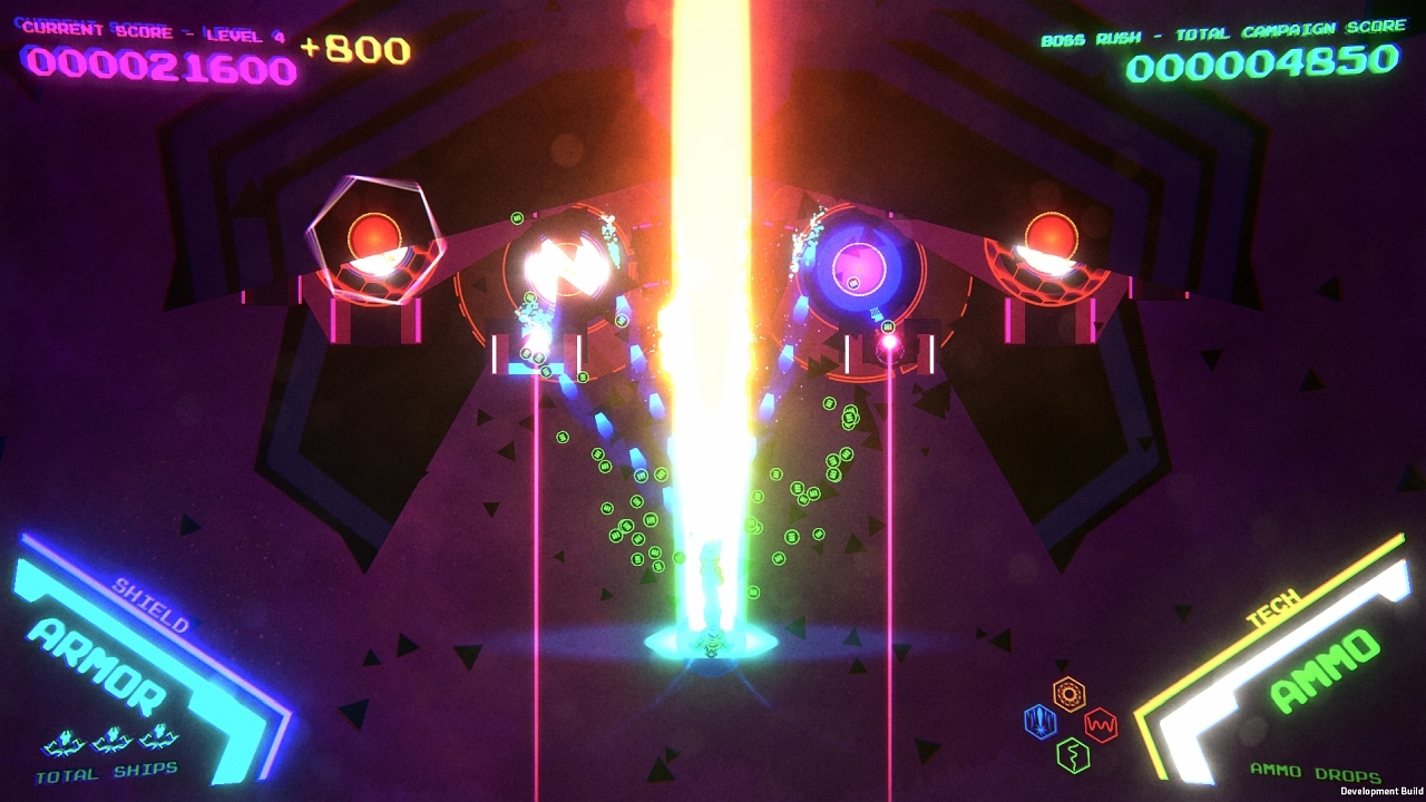 Since this is treated as a separate campaign of new, boss only levels, you earn separate personal best scores for each boss you defeat, which then combine into a total Boss Rush score. Although it is separate from the main campaign, your ship and weapon options do carry over, so anything you’ve unlocked in the main campaign is available to use when you play the Boss Rush.