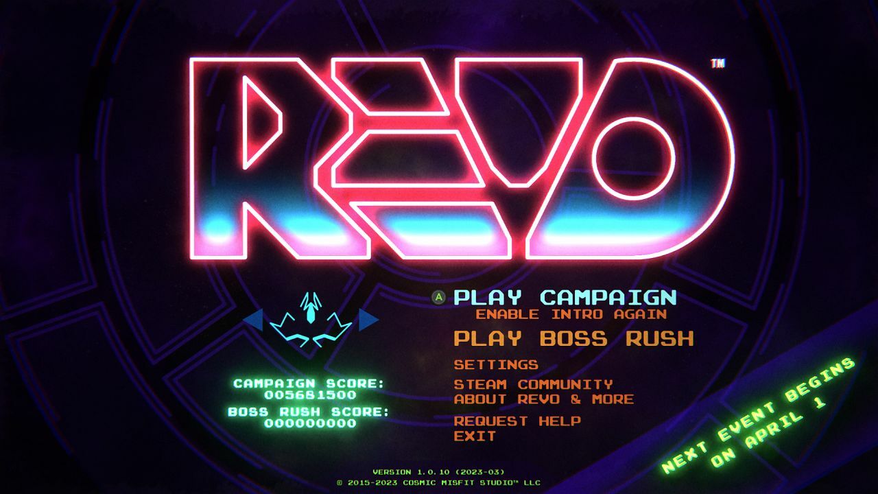 REVO just received a small update that will affect nothing today save for a fix for a minor bug introduced into boss battles via the last update. However, it gets the game ready for April’s festivities as well as adds a notice on the title screen about upcoming events so you can know when to expect something special to happen in game.