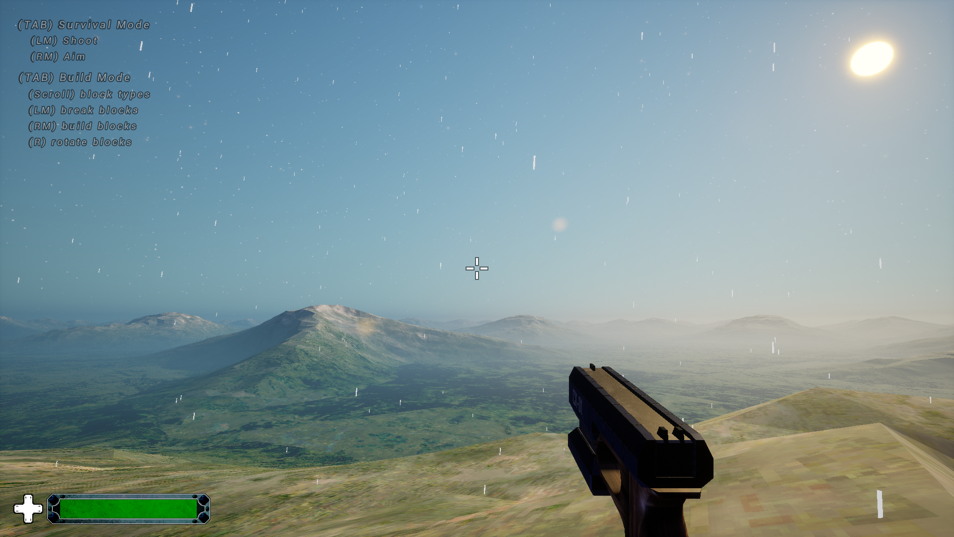 Initial spawn biome and weather is now consistent with a more neutral temperate region, from which the player will venture out to hotter or colder areas as they explore the world