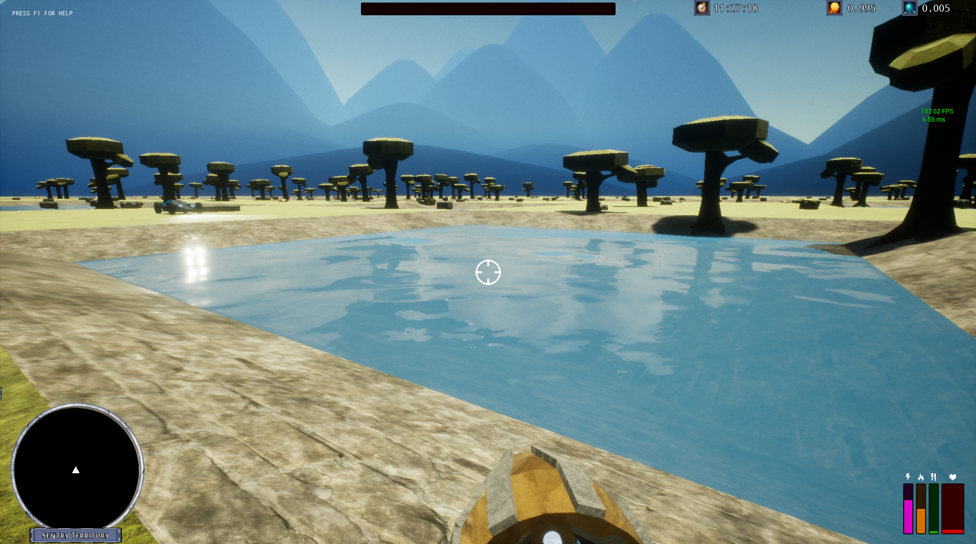 Added a handful of basic survival mechanics (gauges in lower right corner):