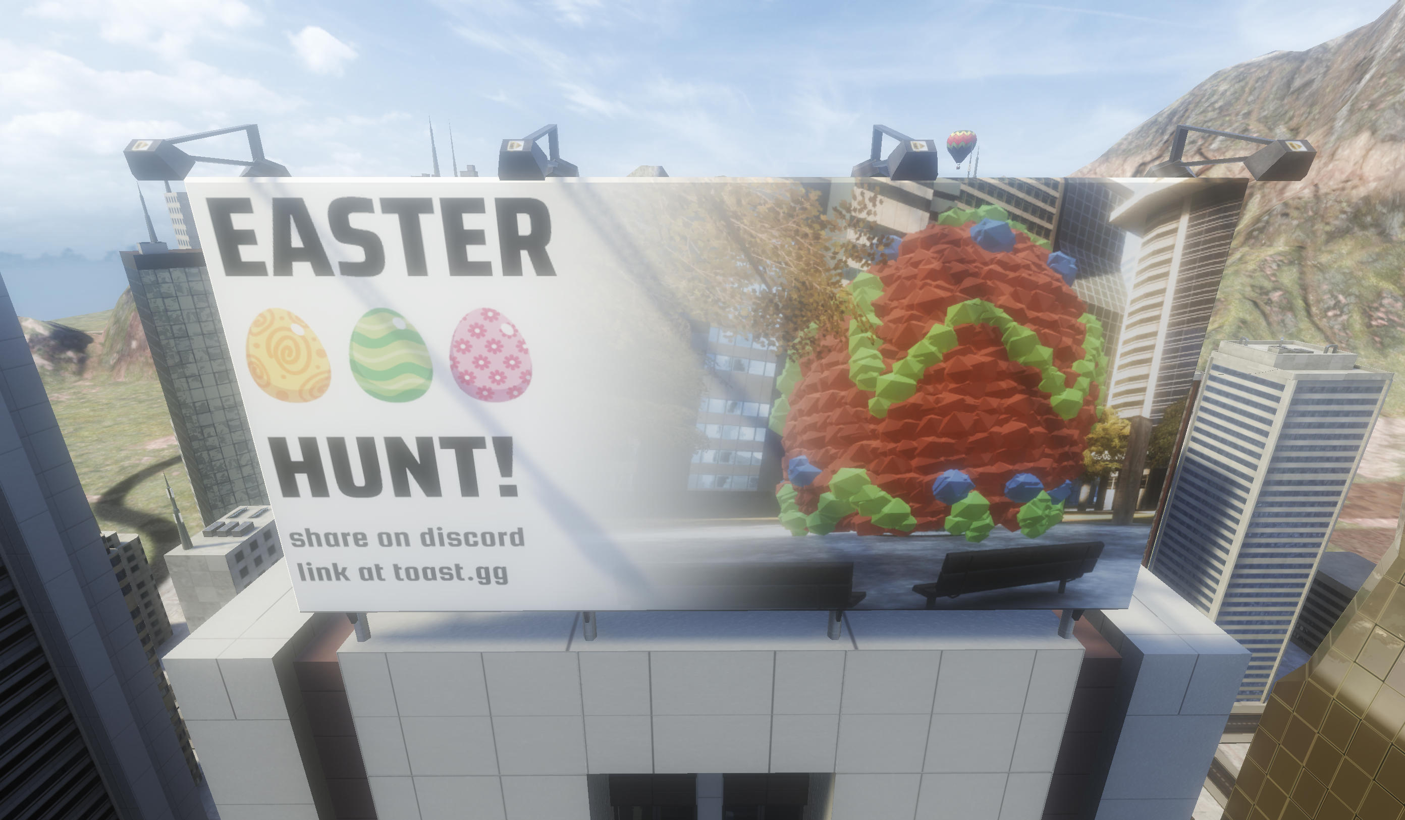 To keep the decal hunting going, there are now 3 colorful eggs on surfaces in the city. It should be a fun challenge for all ages to try to find them. Once you get the 3 screenshots of the egg decals you can head to our Discord and share the time it took you with the community :)
