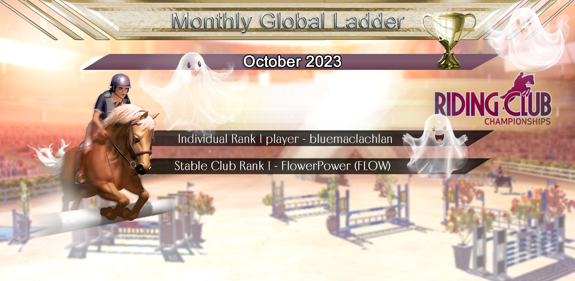 Many congratulations to bluemaclachlan for the individual Rank 1 position, and to The Misfit Riding Club for the Rank 1 Stable Club position for November. Huge congratulations to everyone, and to all the Stable Clubs for the positions you achieved, great job! Let the battle commence for those places in December! :)