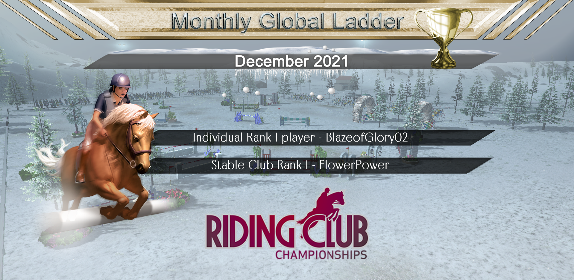 Many congratulations to BlazeofGlory02 for the individual Rank 1 position, and to FlowerPower for the Rank 1 Stable Club position for December. Huge congratulations to everyone, and to all the Stable Clubs for the positions you achieved, great job! Let the battle commence for those places in January! :) We'd like to wish you all a very Happy New Year, and we hope it's a great one for all of you!