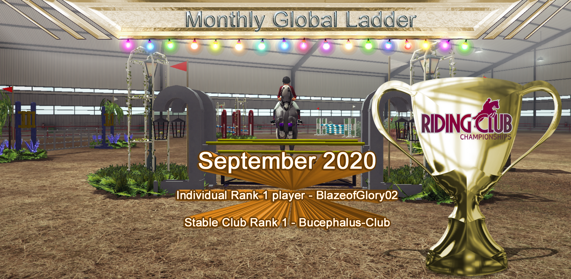 Many congratulations to BlazeofGlory02 for the individual Rank 1 position, and to Bucephalus Club for the Rank 1 Stable Club position for September. Huge congratulations to everyone, and to all the Stable Clubs for the positions you achieved, great job! Let the battle commence for those places in October! :)