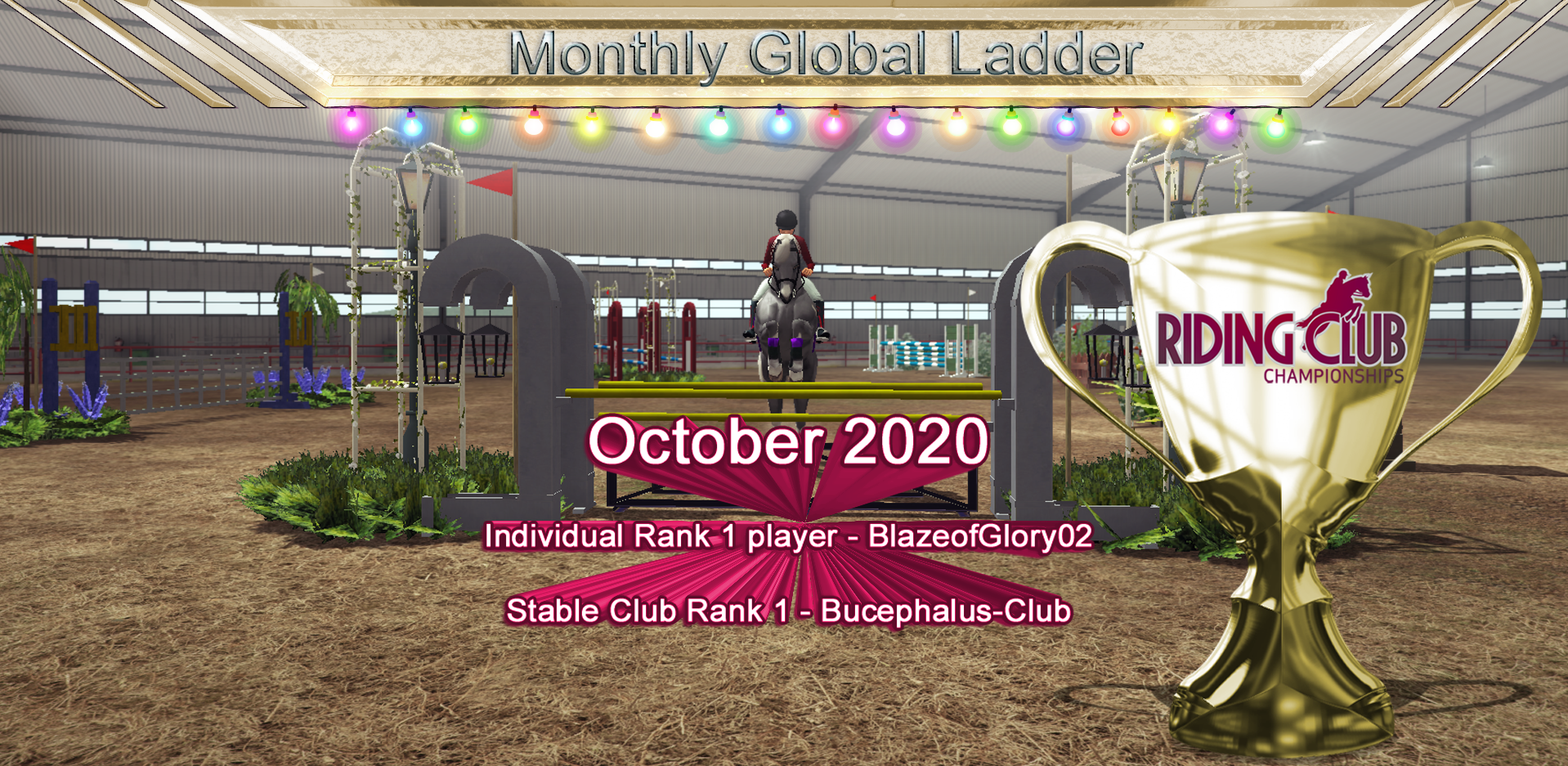 Many congratulations to BlazeofGlory02 for the individual Rank 1 position, and to Bucephalus Club for the Rank 1 Stable Club position for October. Huge congratulations to everyone, and to all the Stable Clubs for the positions you achieved, great job! Let the battle commence for those places in November! :)