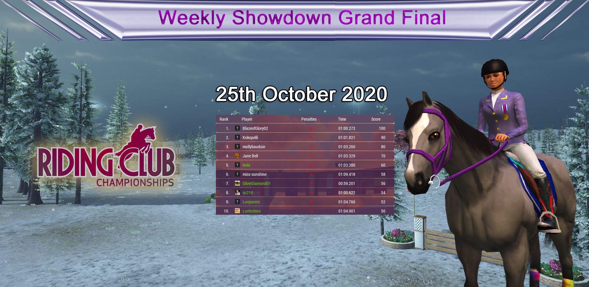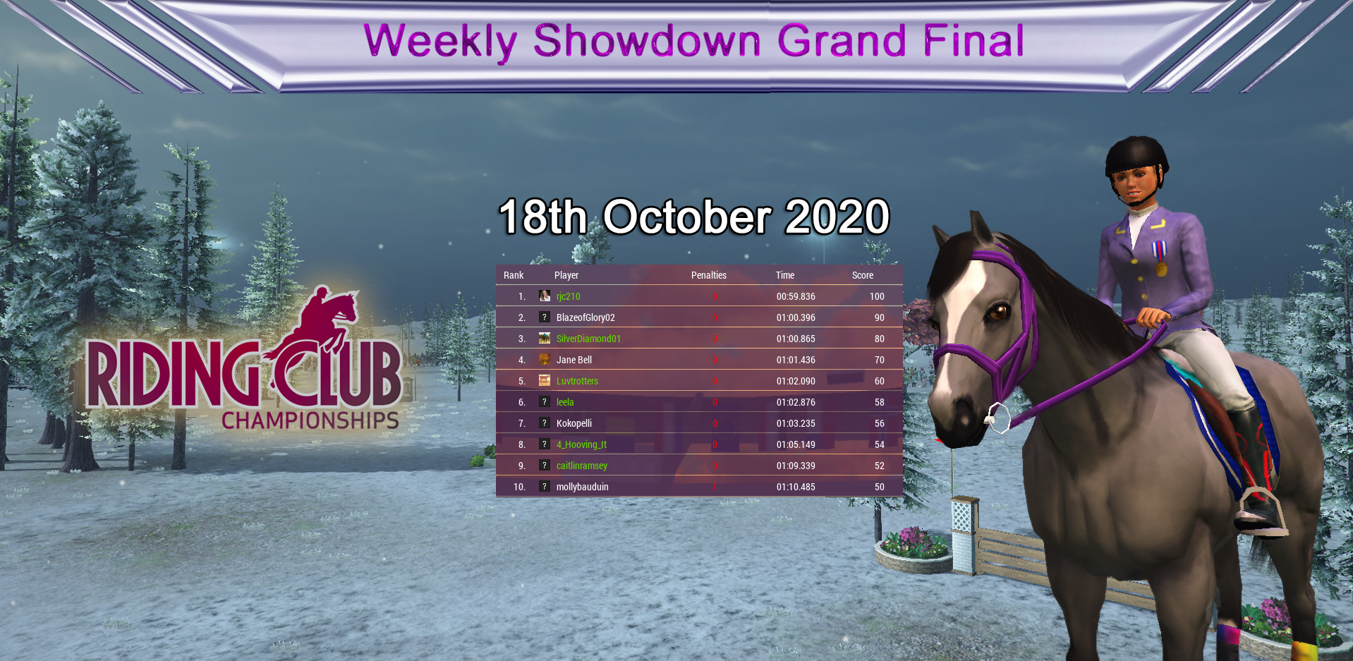 Huge congratulations to our Weekly Showdown Grand Final Winner, Luvtrotters who wins with the only clear round on one of our hardest 1.40 courses! Congratulations to everyone who made it through and did so well! :)