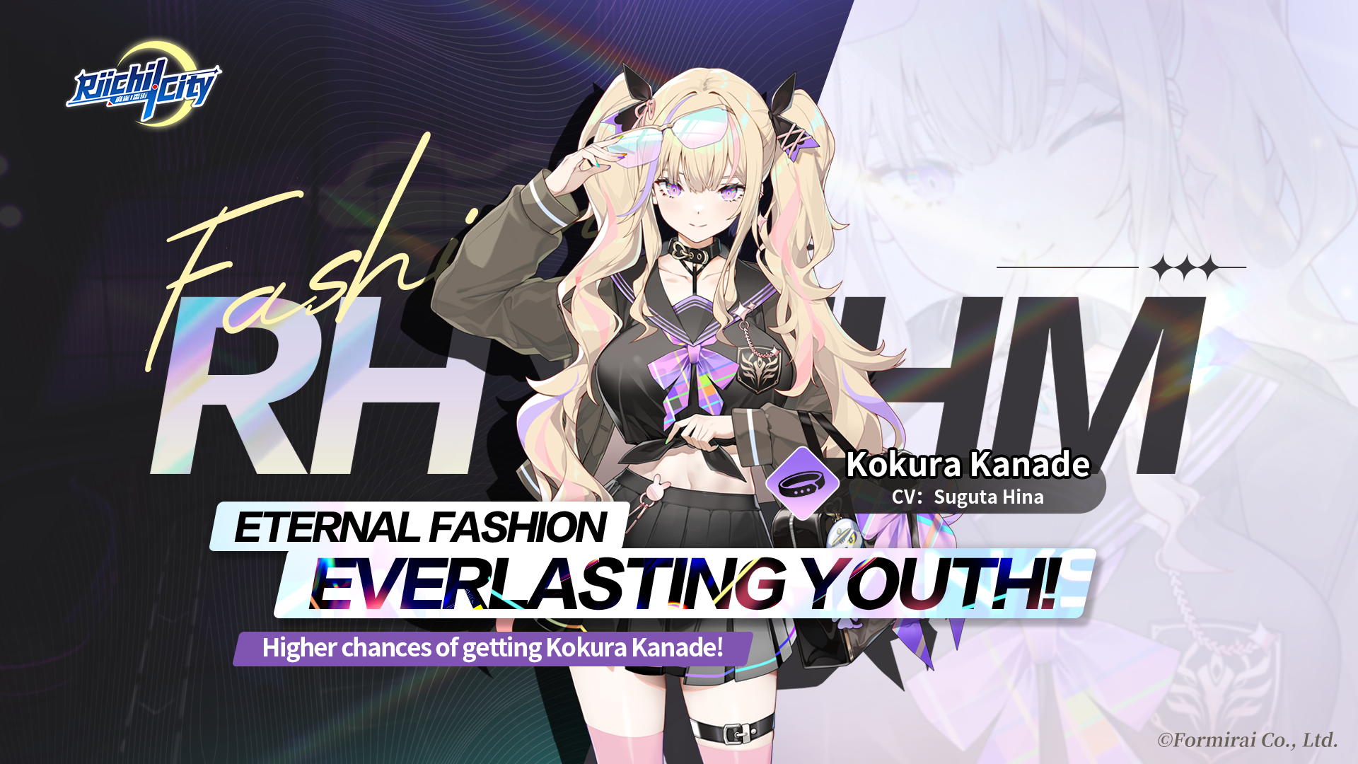 Duration: the end of maintenance on 2024/09/05 (Thu.) - 2024/10/07 (Mon.) 04:59 (UTC+9) During this period, players will have higher chances of obtaining Kokura Kanade from the limited-time Gacha pool Rhythm in Fashion!