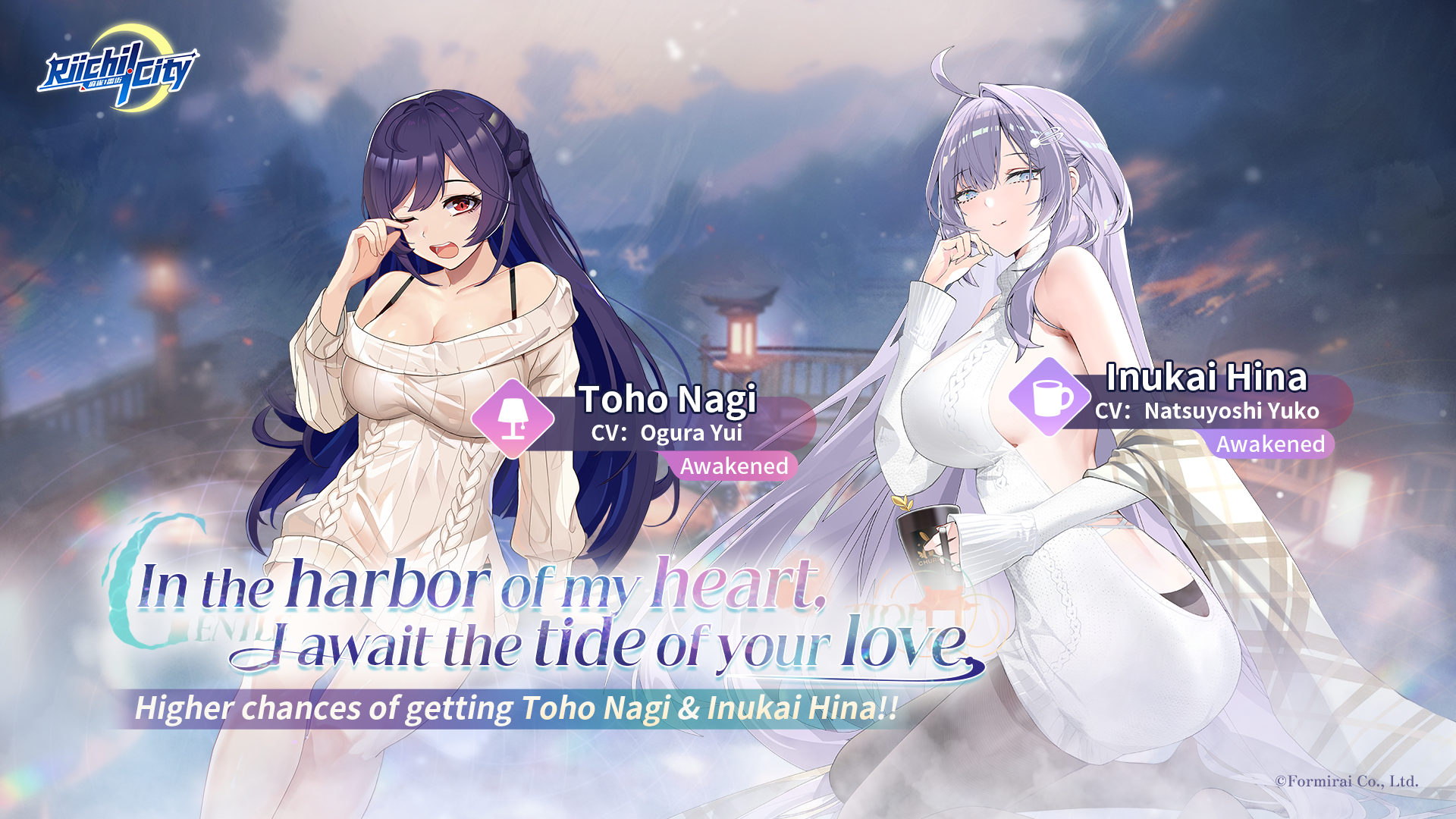 [Duration]: 2024/10/7 (Mon.) 05:00 (UTC+9) - 2024/10/21 (Mon.) 04:59 (UTC+9) During this period, players will have higher chances of obtaining Inukai Hina & Toho Nagi from the Gacha pool Gentle Tide!