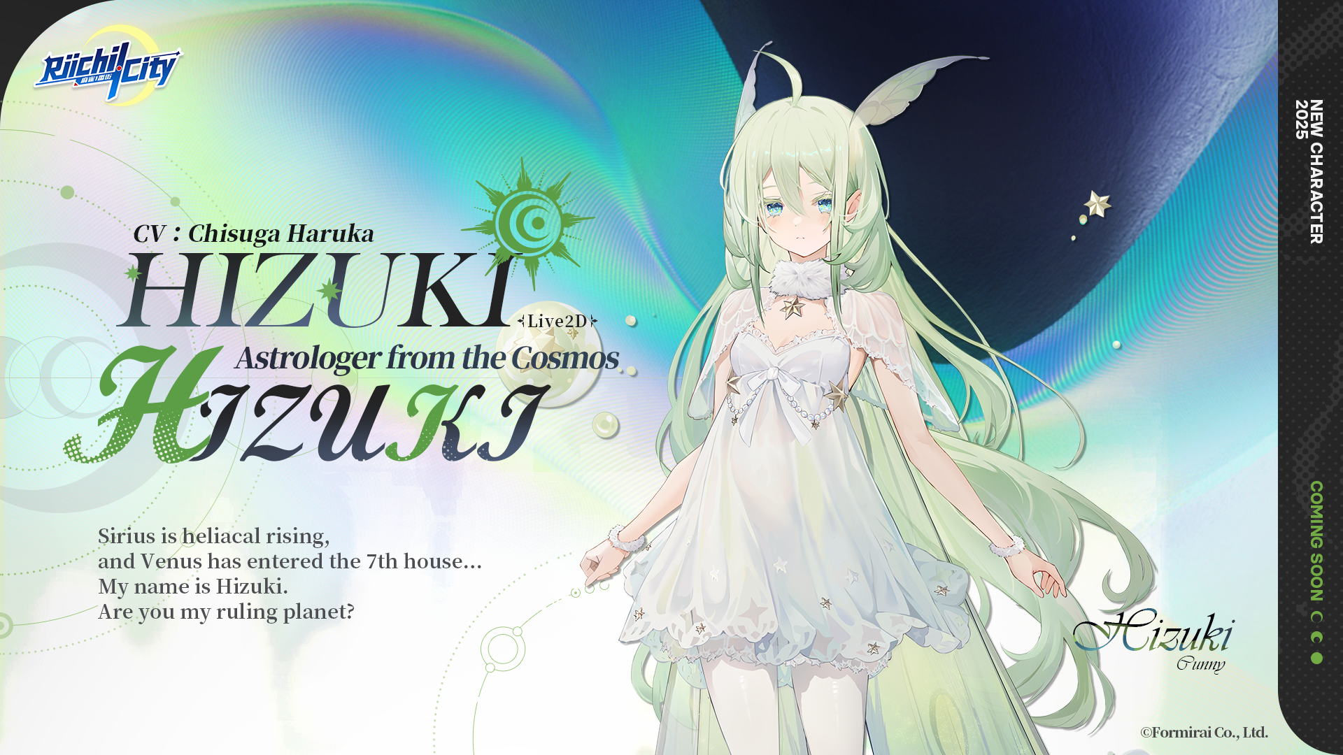 Name: Hizuki CV: Chisuga Haruka Birthday: August 13th Height: 151cm Style: Reacting as the stars dictate Favourite Yaku: Daichisei
