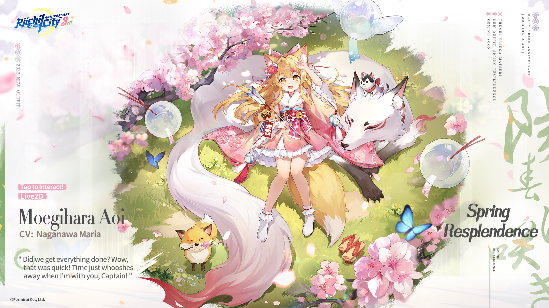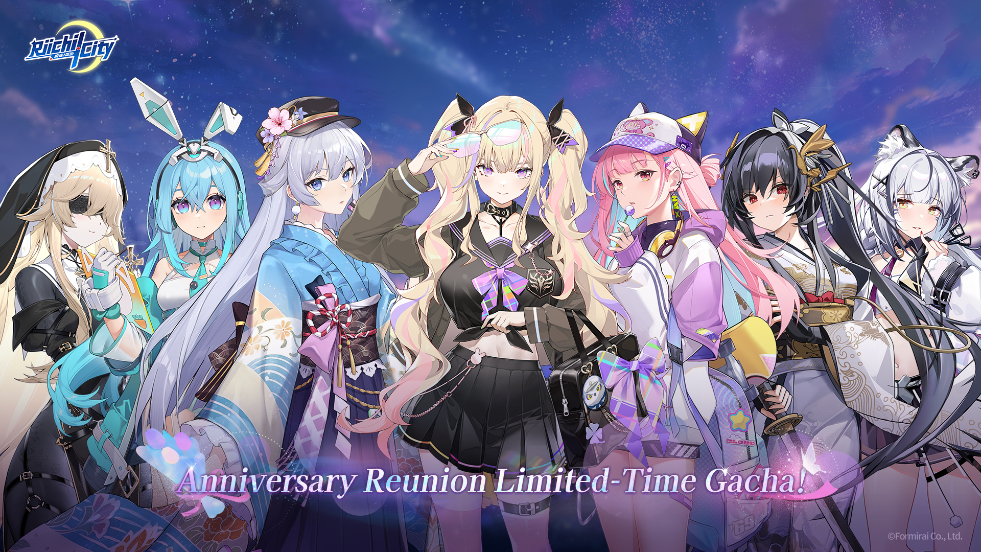 During this period, players will have higher chances of obtaining Moegihara Aoi, Elsie, Kokura Kanade, Kuki Renshin, Otonashi Ikuko, Igarashi Saeko, Reizei Emeko, Amami Shiotsuki, Kazama Shizuku, Natsuumi Marin, Hara Michiyuki, Toho Nagi, Fuwa Mahiru, Fukase Alice, Inukai Hina, Shiraha Asuka, Menia, and Saotome Yurika from the Gacha pool Anniversary Reunion during their respective rate-up periods!