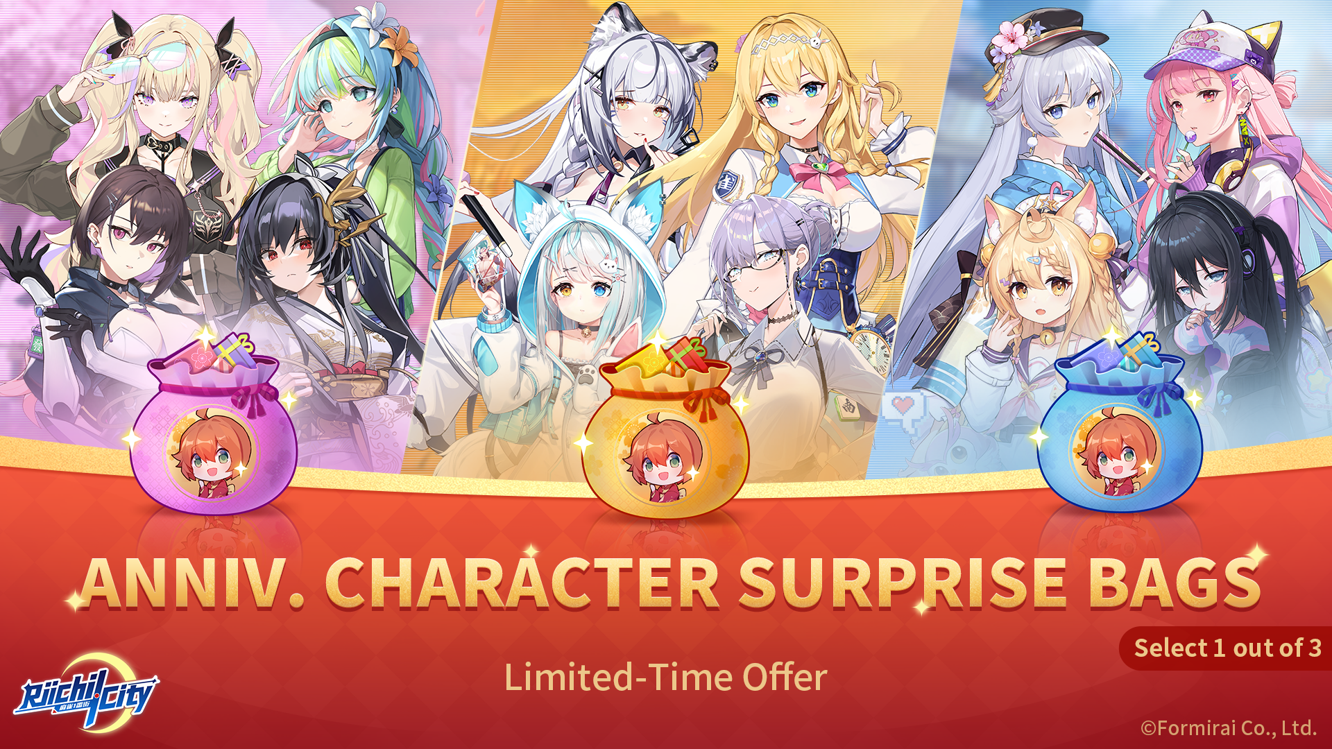 6. Anniv. Character Surprise Bags will be available in Shop. Players can purchase one of the three bags to obtain a random character!