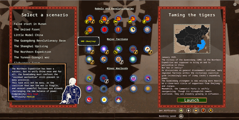 January 1929, The victory of the Guomindang (GMD) in the Northern Expedition was supposed to bring an end to warlordism in China. But has it really? As discussions on general disarmament continue, many regional factions within the victorious coalition grow increasingly wary of Jiang Jieshi's expanding power. The Guomindang strongman is now relying more heavily on a close-knit circle of supporters from Zhejiang and Jiangsu. Meanwhile, the Communist Party is swiftly reorganizing. Though its strongholds remain scattered, they are steadily growing in influence...