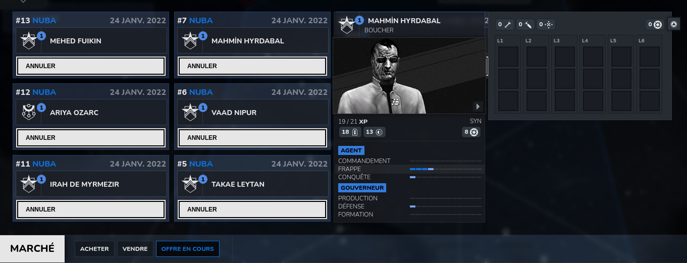 Sell resources (ideology and technology), agents (in your deck or deployed on the map) or fleets (deployed on the map with a navarch) for credits on the brand new marketplace.