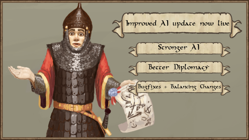 Update 0.9.6 addresses AI behaviour and includes some other bugfixes and diplomacy tweaks. Many changes and improvements were done and we didn't get any major problems reported from the beta branch players, so we are pushing it to the stable branch now. The next patch will also contain more AI and diplomacy improvements and bugfixes, but we didn't want to keep you waiting any longer. :)
