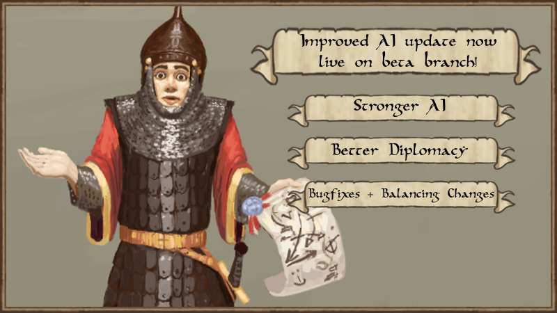 we are aware about bad AI behaviours and other problems after the performance patch and have started to straighten that out. Many changes and improvements were done and we want to publish them on the beta branch before we continue. The next patch will also contain more AI and diplomacy improvements and bugfixes, but we didn't want to keep you waiting any longer. :)