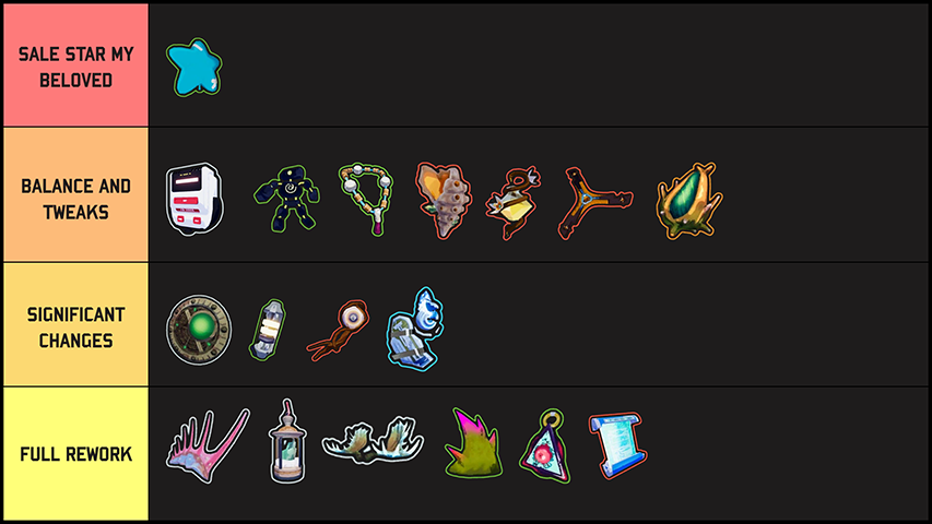 Some Items are completely overhauled, while others have had significant balance changes. Most items have had impactful quality-of-life updates too. Those updates range from just addressing reported issues to new visual or audio cues that better communicate their effects.