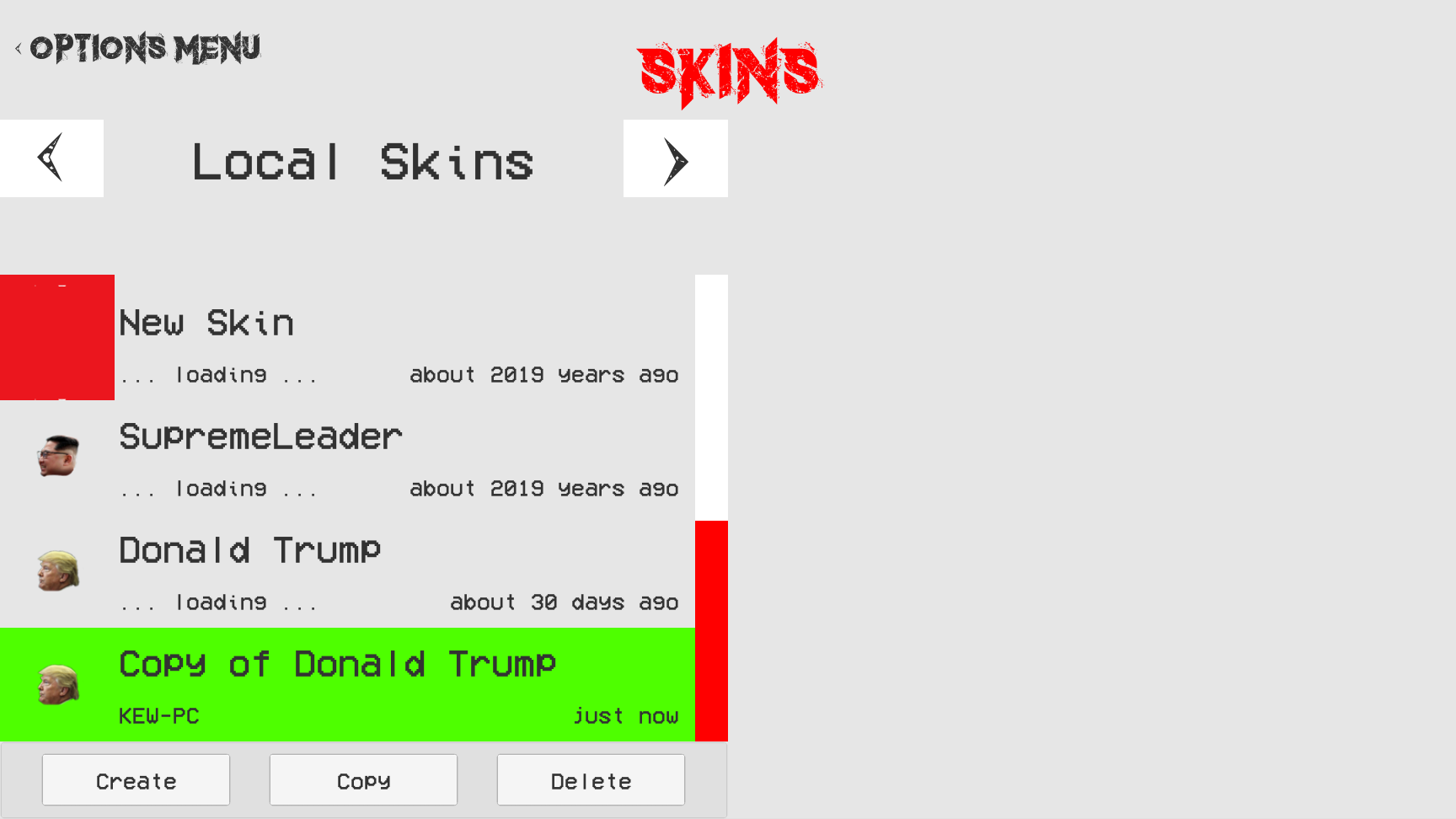 This week I worked more on the Skinning feature and managed to get the create, copy and delete buttons working.