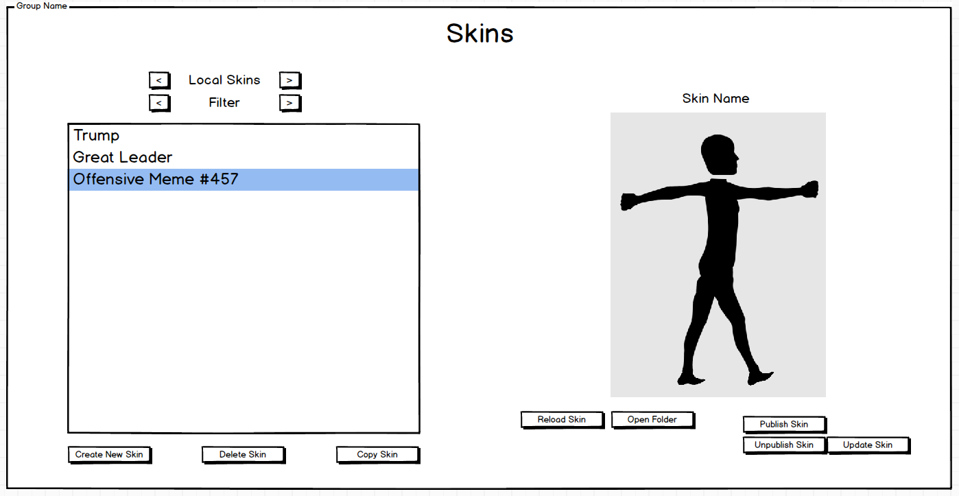 (Current Design of Skinning UI)