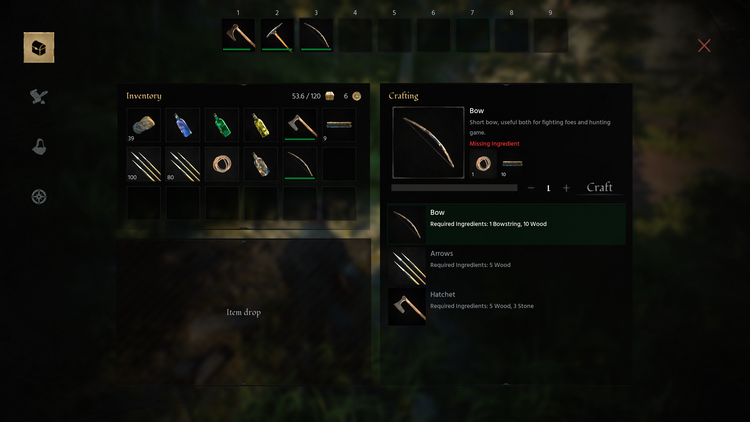 Each weapon has its own life span and can be damaged, that's why it always good idea to have some materials to make a new one. When crafting, you can immediately choose how many items you want to craft.