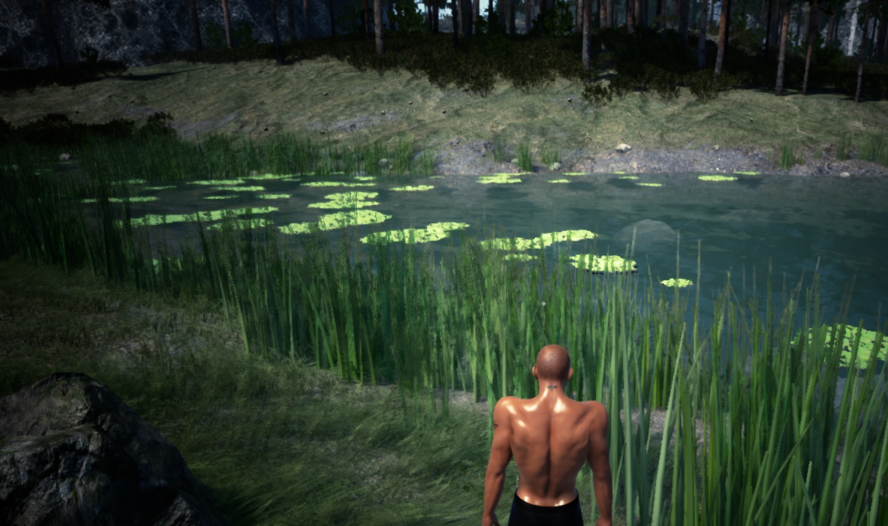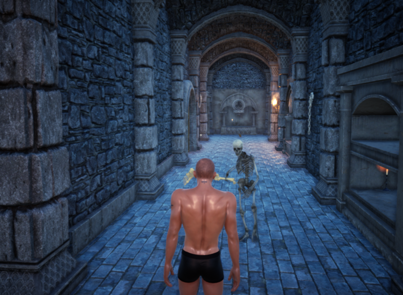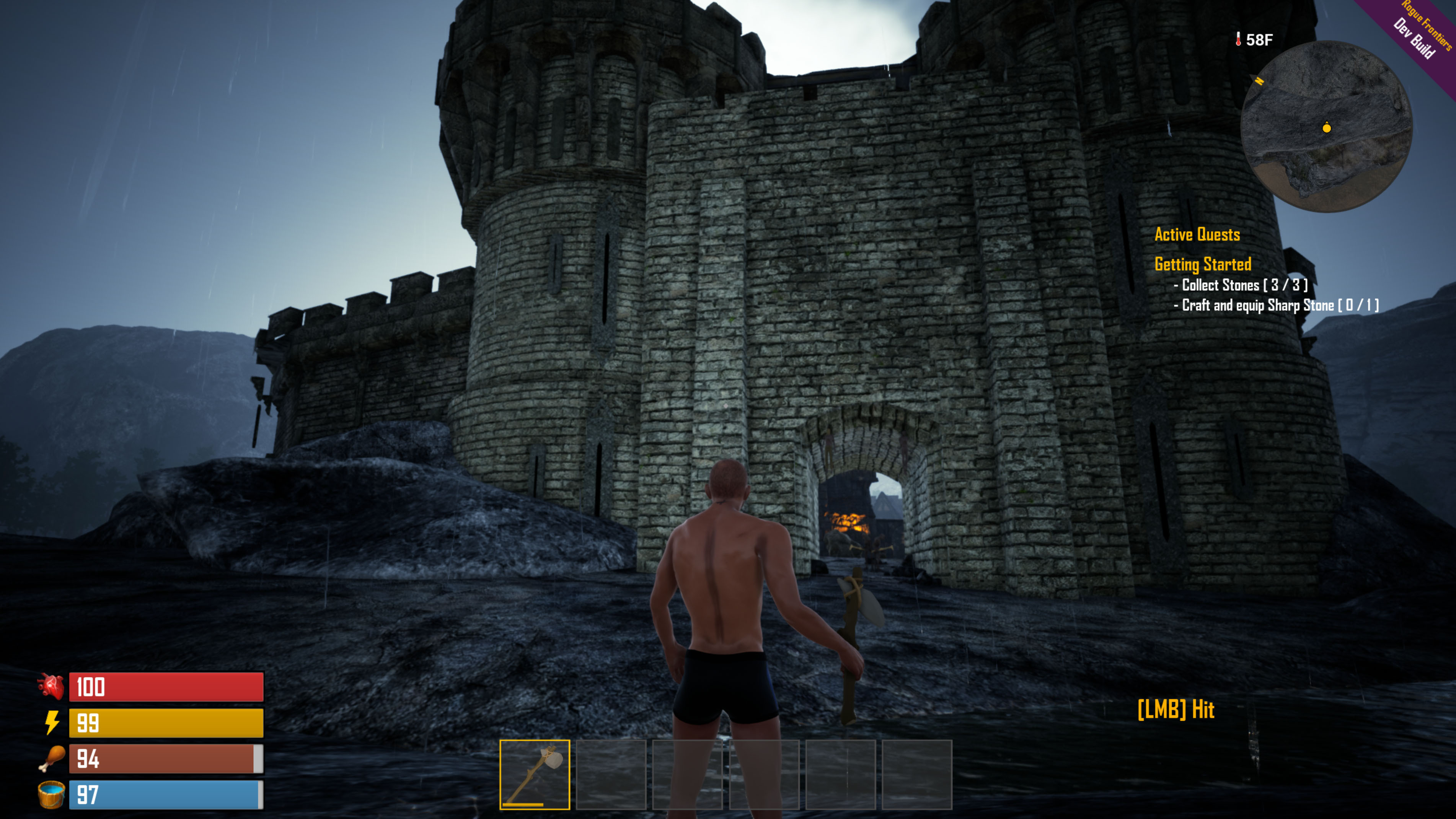 The second game zone is coming along nicely with the first AI in the game that can attack back. There are AI wolves and AI humans now; along with a working reputation system. The AI has a long way to go until you can have companions, but it's coming along well.