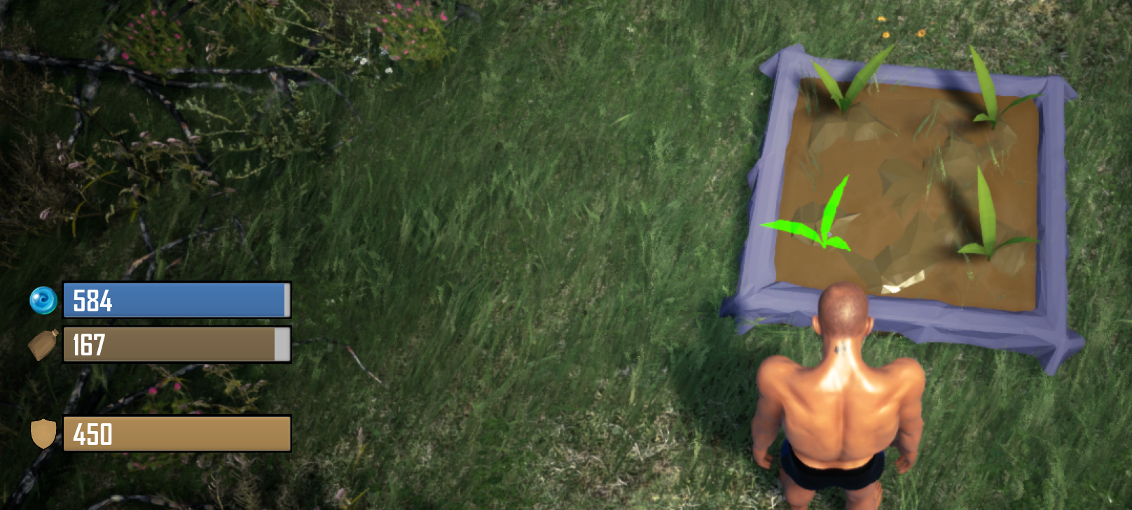 How about the new map updates? The new world map starting area is coming along nicely with piles of stone, plants, trees, rocks, and flint to harvest.