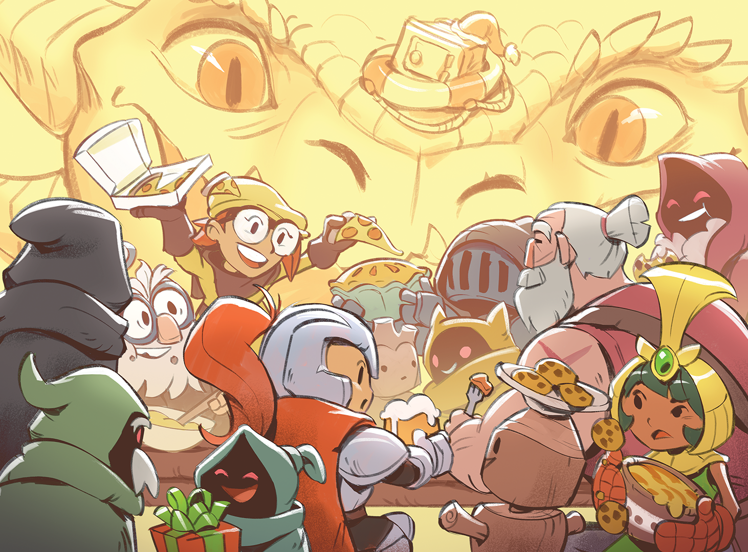 Thank you all for your support as we officially launched Rogue Legacy 2 this year, and for making the experience an incredible one for us. Now's the time to sit back, relax, and enjoy a soothing hot mug of pizza to the face.