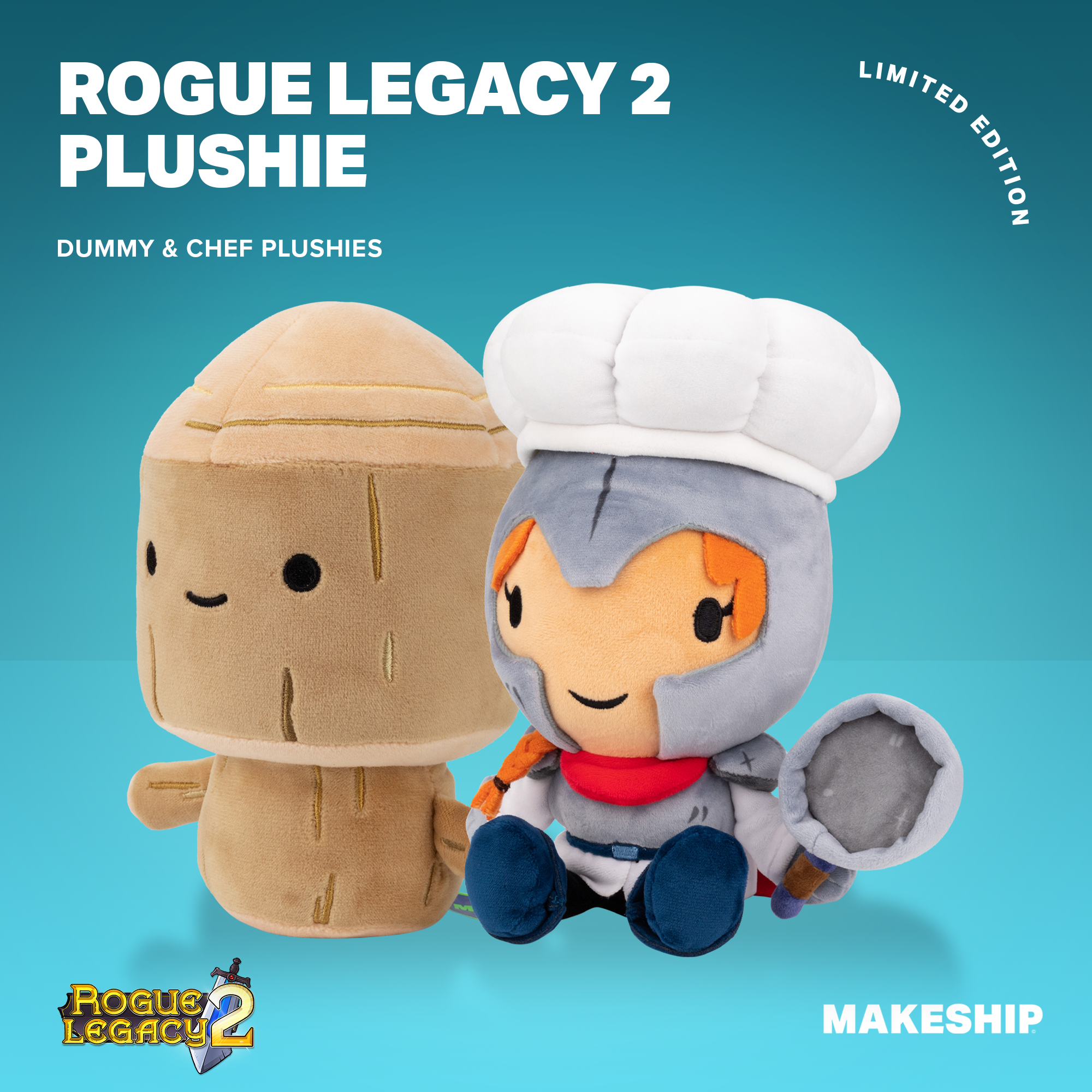 Are you a Rogue Legacy 2 super-fan? Do you love super high quality cute things? Along with new content and new consoles, we're officially launching the MakeShip plushie campaigns for both the stalwart Chef and the infinitely knowledgeable Lady Quinn!