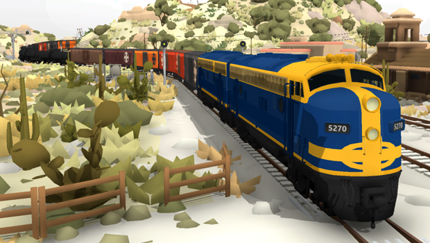 The Santa Fe layout is inspired by the route of the famous "Super Chief" streamliner, and crosses from Pasadena in Los Angeles, through the Mojave desert, and through old Route 66 towns. The map exits through the red desert canyons of Arizona.