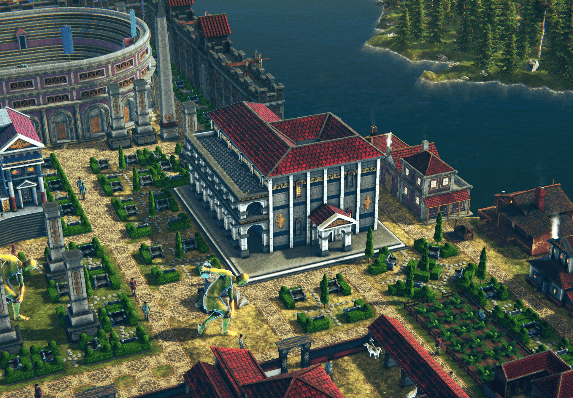 Here’s what’s already in the game: a full city-building loop, wave-based defense, building upgrades, a trading system, aqueducts, and interactions with multiple gods — you can choose to win their favor or risk facing their wrath. Mythological creatures like the hydra and dragons are also part of the challenge, but if you prefer a more grounded experience, you can turn them off and face only barbarians and berserkers.