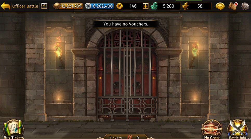 1) Starting an Officer Battle - To initiate an Officer Battle, you need an Officer Battle Voucher. - You can purchase vouchers from the Officer Battle menu for 1,750,000 Rations. - If you don't own any vouchers, you must purchase them one at a time. - One voucher will be spent per battle.