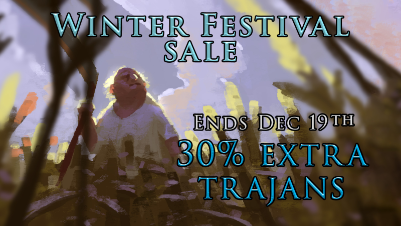 From 00:00 AM UTC December 17th to 00:00 AM UTC December 19th, pay your respects at the Temple of Saturn to The King of the Titans and the progenitor of the modern Olympians to receive a mighty bonus of 30% extra Trajans!