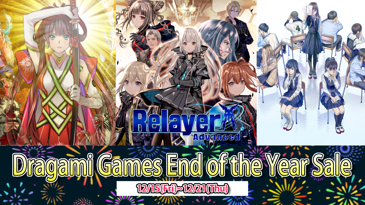 The Dragami Games End of the Year Sale will be held from Friday, December 15th to Thursday, December 21st. During this sale, Dragami Games titles will be available at reduced prices. Among the full-length games participating in the sale are the Tactical Role Playing Game "Relayer Advanced" and "GOD WARS The Complete Legend", and the mystery ADVs "Root Letter" and "Root Letter Last Answer". Please also note the various other DLCs!