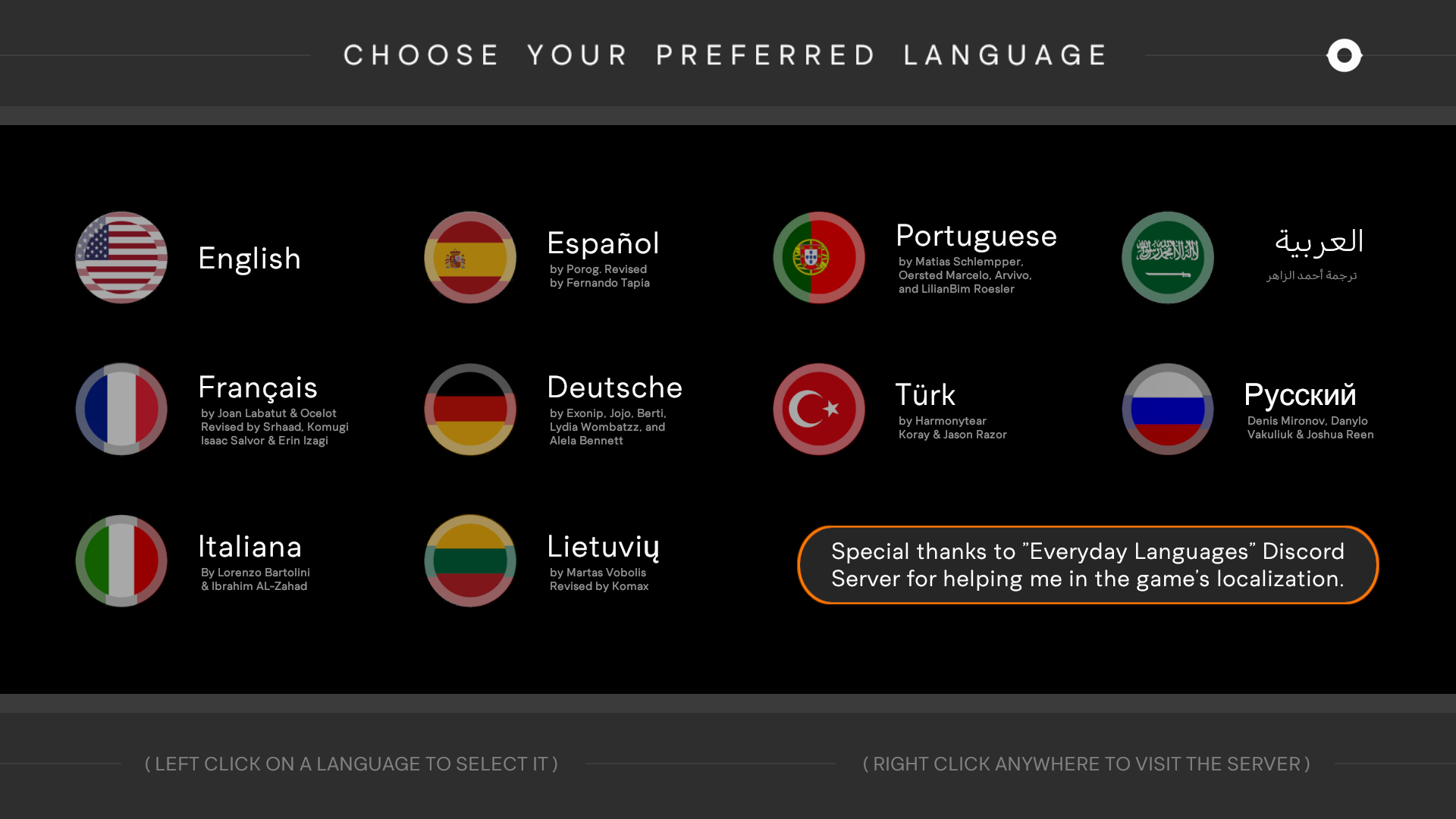 If you're German, Russian or Portuguese, you can now play the game in your mother language. If you have any feedback on the translation or the game, you can leave it here or in our discord server: