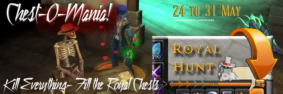 Starting from now until scheduled maintenance on Thursday, May 31 Chest-O-Mania is back and in action and the Royal Hunt may grant additional prizes for those who try the hardest!