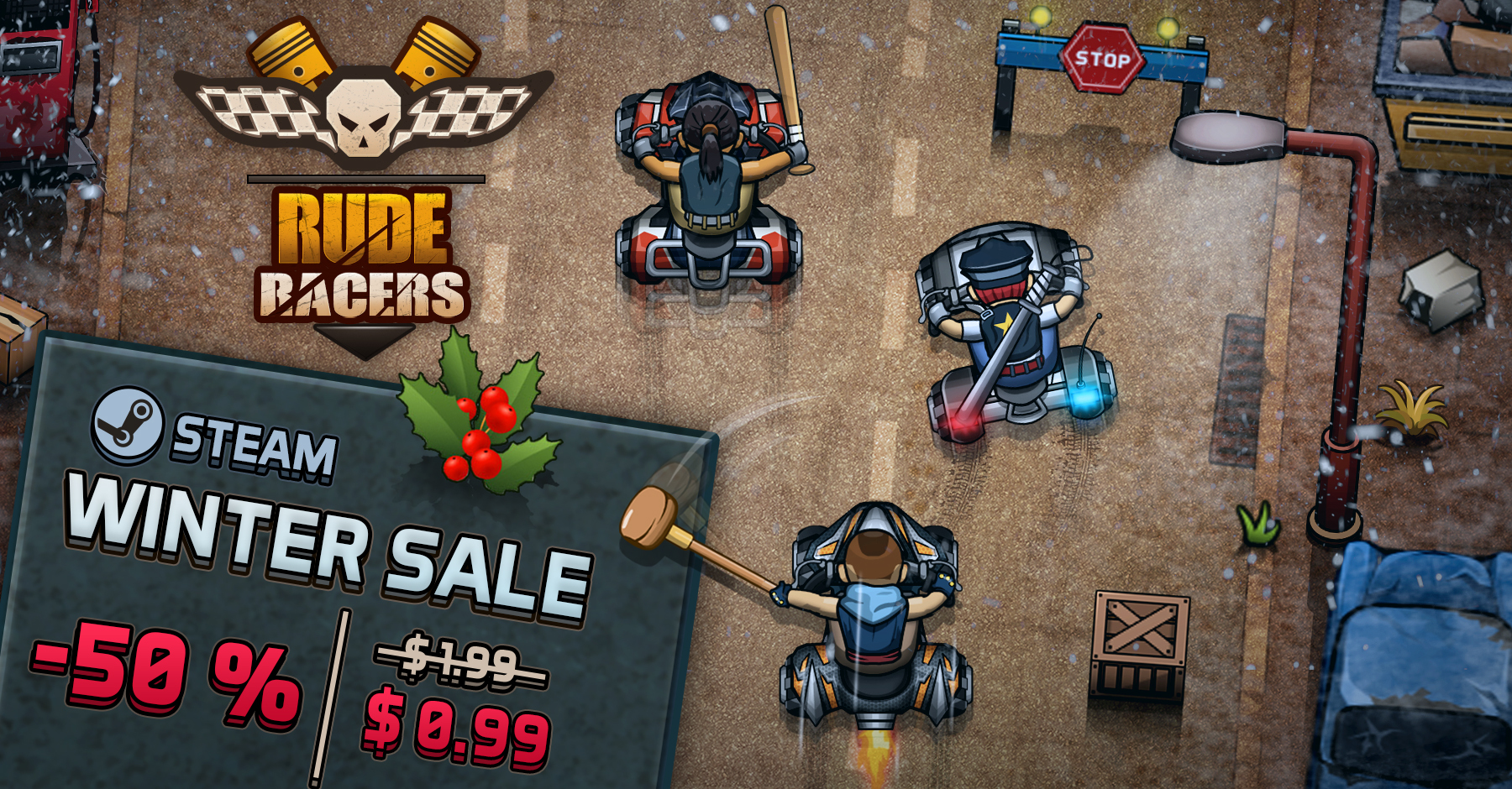 Experience the most smashing and intense combat-racing in Rude Racers now available for ONLY $0.99 on the Steam Winter Sale!