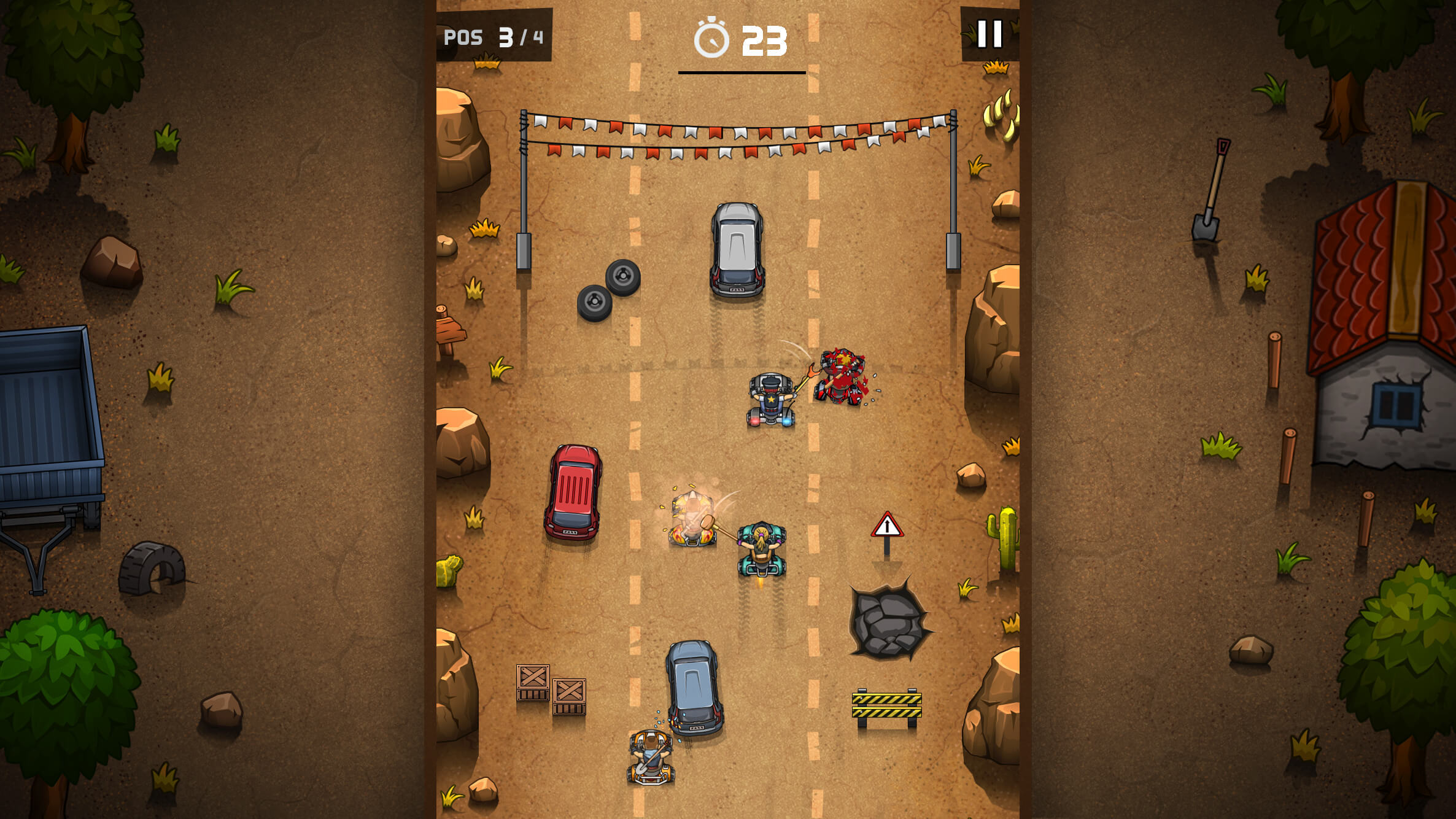 Crash into a wall and your opponents will race by passing a little smirk, express your frustration at having missed a lethal last blow to the tow truck and have the last laugh as you catch up to the bullies in Hunter events and push them off track!