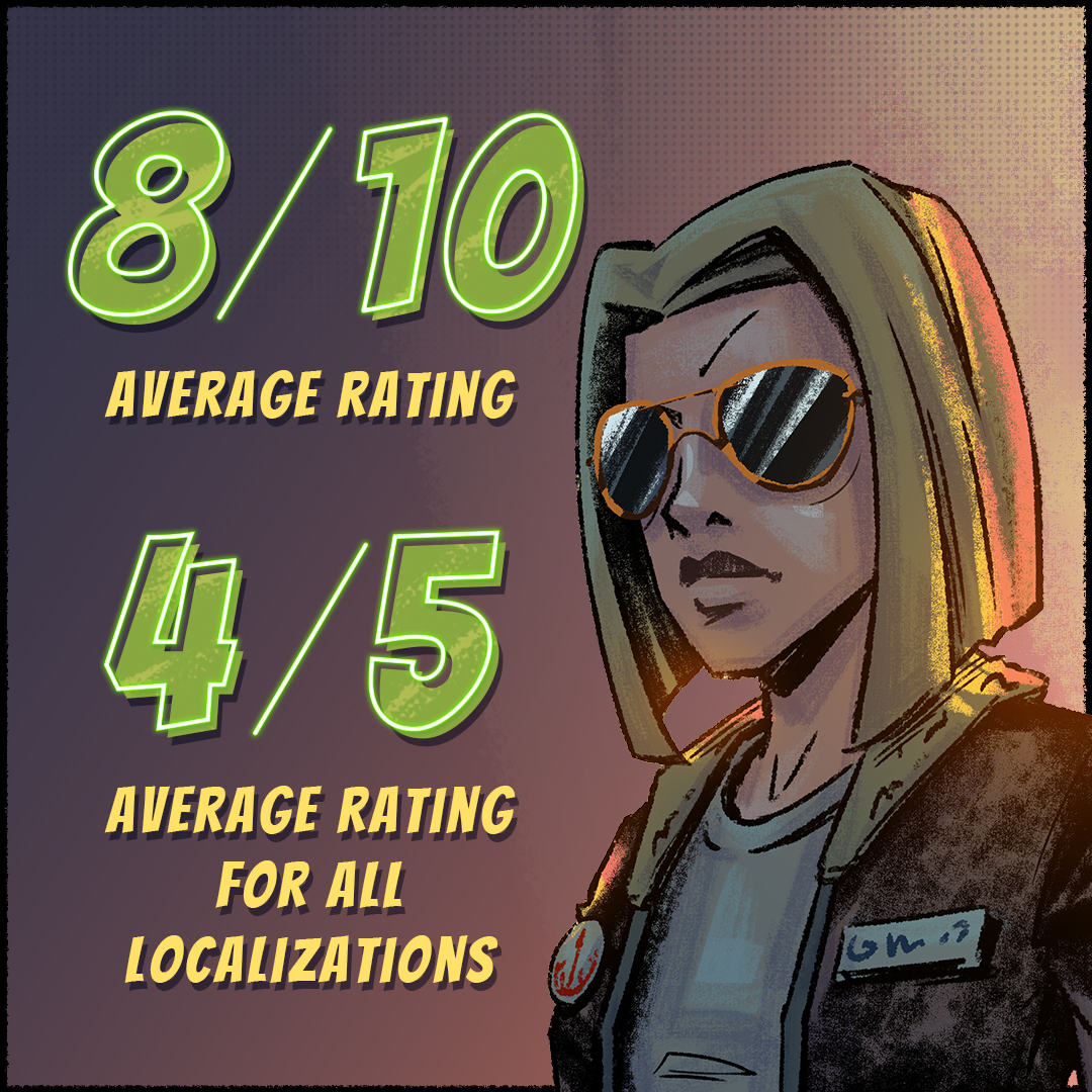 The average rating of the Rue Valley alpha in this survey is 8/10. Our team is incredibly grateful and motivated by this reception. We’ll do our best to make the game even more enjoyable on release! The average rating for all localizations was over 4/5, and we are glad we managed to add localizations to the Rue Valley alpha.