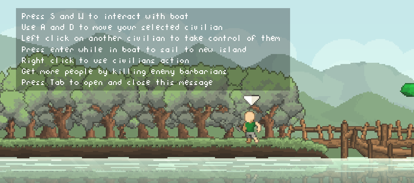 Patch 1.0.1 - Added start-up tips (press tab to toggle) - Fixed difficulty scaling over time - tweaked island exploration chances - Civilians names are their roles by default
