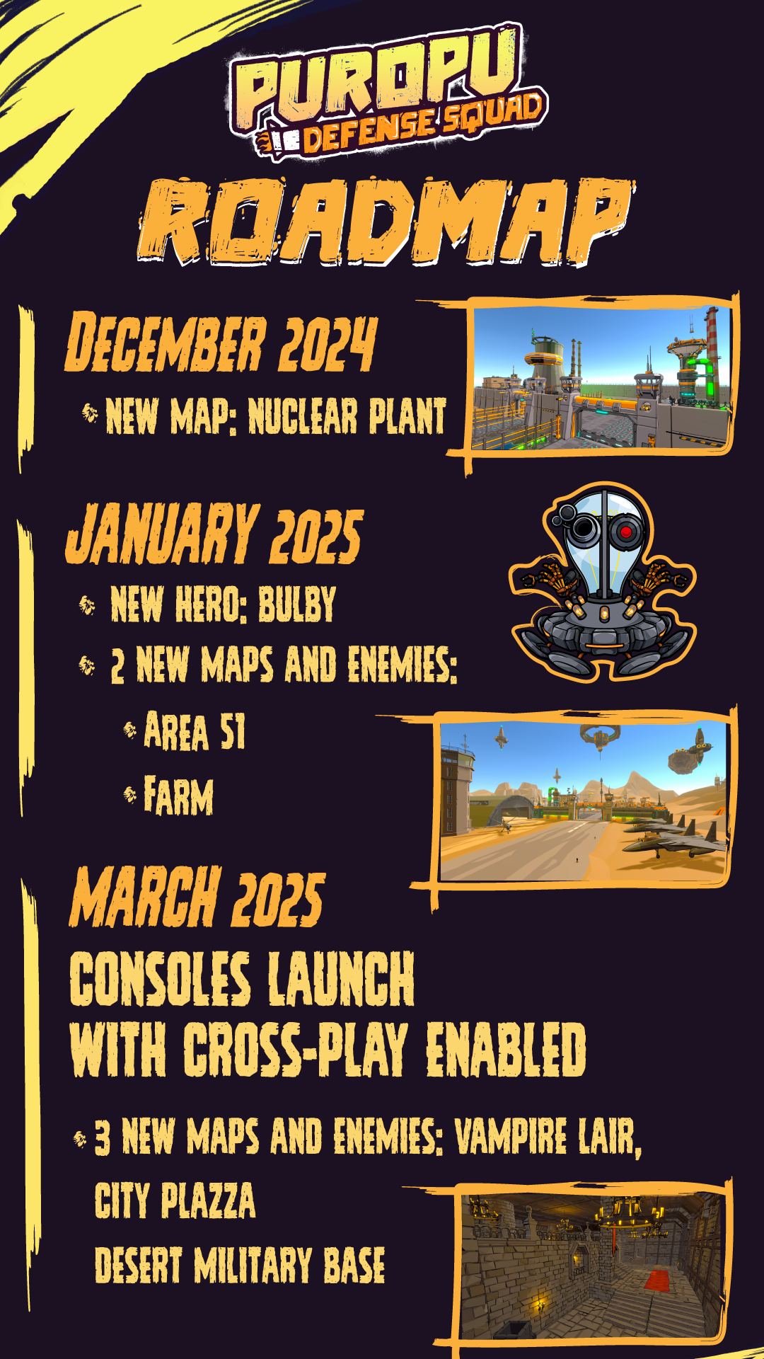 A lot more to come! More maps, enemies, heroes, and we'll be coming to consoles soon! Check out the content to come in the roadmap below.