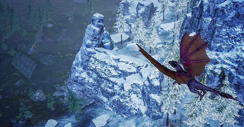 Nestled between frozen peaks, burning villages lay tattered after the war. Guarded by giants, these dangerous locales make for brutal battles, but defeating enemies and looting their bodies provides great reward for those brave enough to make the trek.