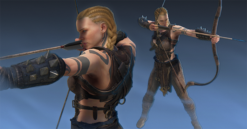 We really liked the portrayal of strong women in the show Vikings. Lagertha, portrayed by actor Katheryn Winnick, and Porunn, portrayed by actor Gaia Weiss were very inspirational. From the athletic anatomy side, we referenced various female crossfit enthusiasts, and UFC athletes like Holly Holm. Her facial features were comprised of various elements inspired by Polina Chernenko, Claire Holt, Scarlett Johansson, and others who possess what’s known as facial “angel beauty,” and who also possess golden ratio facial proportions. Hairstyle inspiration came from shows like Vikings, and Game of Thrones, and numerous fans of Norse styles and Viking reenactments.