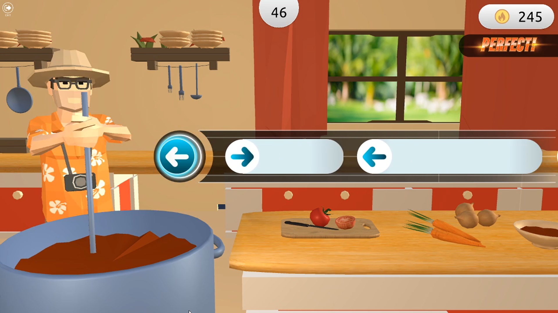 Our first rhythm game has arrived. "Twisted Tempo" will strengthen your OBLIQUES (side abs) while enjoying cooking with lovely music. You can this game play in both Single and Multiplayer mode.