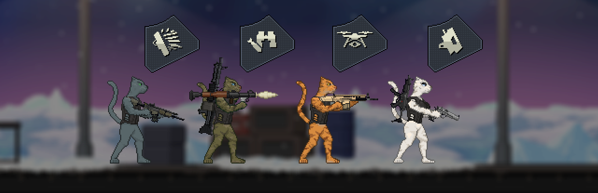 - Further construction of new levels - New feature: Item Collection Feed - Level Selection Screen, Map-themed - Minor improvements to UI elements - Reworked certain data elements related to saving/loading - Made mission score account for time bonus in seconds - Mission Timer; pauses during cutscenes, etc. - Temporarily disabled in-game opening cutscene - Optimized code for UI elements -Changed looting mechanic; You can no longer loot corpses by crouching and pressing the interaction button, enemies will instead occasionally drop a duffelbag instantly containing a random item - Visual improvements; - Mission 1 Background Skybox; Color gradient have been replaced with an animated Aurora Borealis - Color corrections to snow tileset, purple tint - In-game player model's head is improved, more detailed and resembling of a cat - Character portrait improvements - Visual overhaul to guns; WF512 (M249 SAW), VT80 (M60), SC96 (Beretta ARX160) CS-12 Conqueror (SPAS-12) - Added minimap hint in tutorial section - Added new enemy type; Heavy Tank (Currently only present in Mission 2) - Bug fix: prevented player from calling elevator while jumping, causing elevator to be misaligned - Reduced fog in Mission 1 - Made secret passages transparent instead of invisible while player is inside - Added astrosuit player model for Missions in space/inhospitable environments - Lighting improvements; Added a Subtract layer to allow for complete darkness in level areas - New Bullet Hit VFX; pre-rendered particle effect w/ variations - New soundtrack; War Room - Cleaned up unused assets to reduce file size - Koi fish - Shortened time taken to travel through fast travel-vents - Added new rocket projectile variation for Annihilator (M202 Flash) - Replaced "Exit to Windows" option in pause screen with "Abort Mission" - Made Intel items collectible - Tiny level design changes to Mission 1 - Made variables (Ammo, silencer integrity, objectives, etc.) reset correctly when launching new mission - Made an animated Save Icon when game is saving data - Restricted player from pausing while leaving/entering mission in helicopter - Bug fix: Prevented all icicles from exploding when two or more hit player simultaneously - Bug fix: Prevented icicles to fall at slow speed outside water - Beautified "Press Start" UI element on Start Screen - Replaced old helicopter SFX with new, recording of a NH90 - Made RL-14 (RPG-7) attach to Krynkel correctly - Corrected Krynkel' "back" arm - Added a small new secret area - Swapped ID of guns; SF1-A1 & STAR-5 (M4A1 & SCAR-L) - Updated Gun Locker room - Updated Hunger/Energy UI element - Bug fix: Prevented security console from remaining broken while security is reactived on Mission Restart